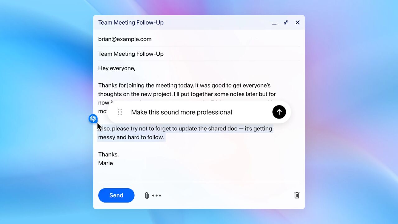 - Intelligent understanding and instant action: AI can not only answer questions, but also “understand” your intentions on the webpage and proactively provide assistance. For example: When composing an email, it will provide real-time suggestions, correct grammar, and even automatically complete sentences. When reading professional documents, you can directly ask it to “extract the core ideas of this page.”