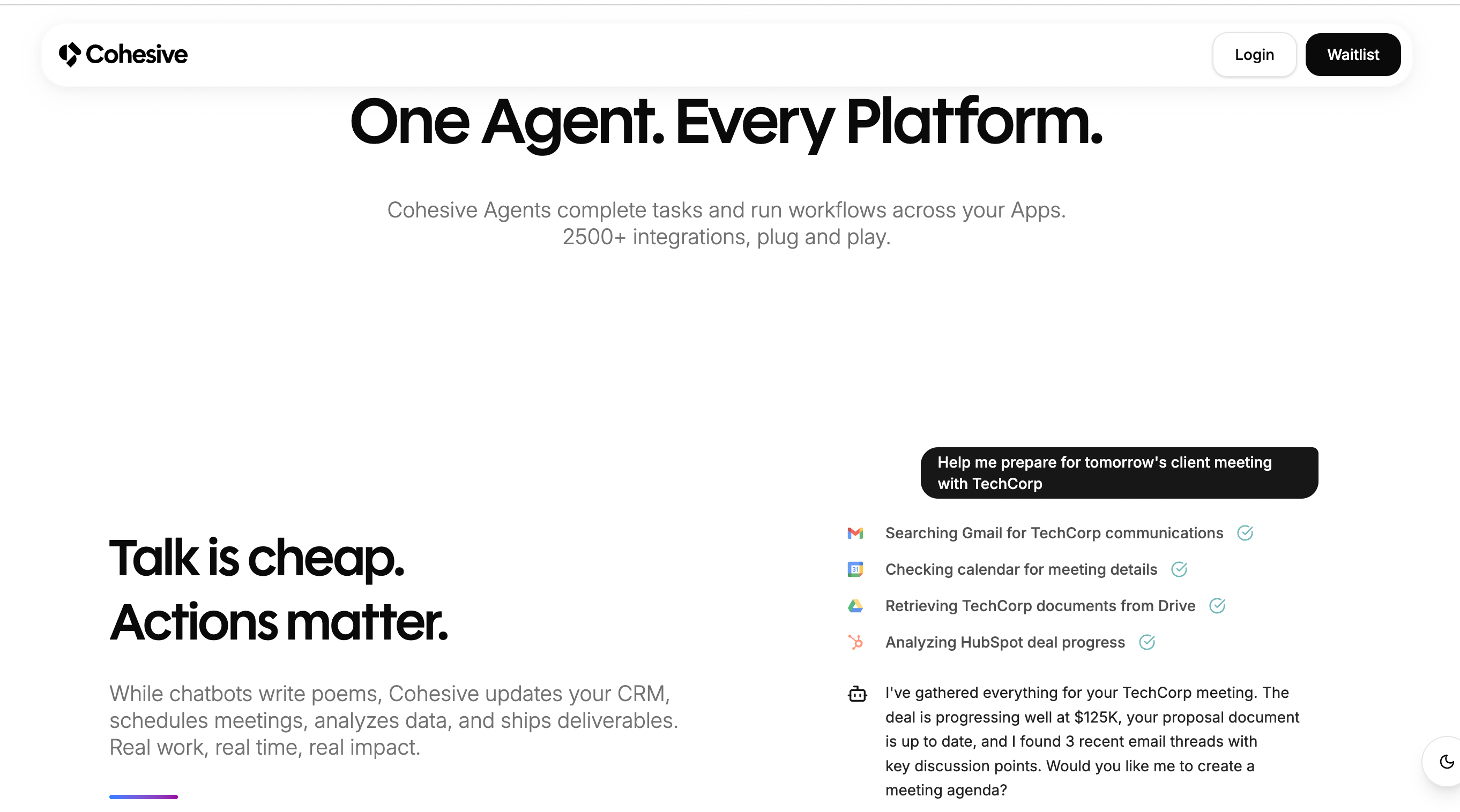 Cohesive has applications across various fields, including marketing, sales, support, and personal use, and guarantees high-quality AI-generated content. Cohesive also offers an AI-powered editor to help users edit text, images, and language translations to ensure accuracy, engagement, and conversion rates.